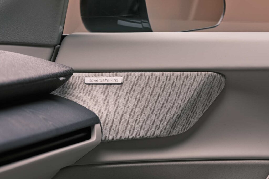 加えて、前後4つのシートに備えつけられたヘッドレストスピーカーを含む、合計28個ものスピーカーから構成されるBowers & Wilkins製オーディオシステムや、Dolby Atmosに対応したApple Musicをボルボとして初めてプリインストールするなど、プレミアム性も追求したEX60には最上級のリスニング環境が構築されている。