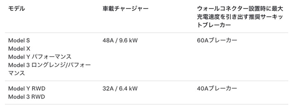 テスラ純正のウォールコネクターは、200Vで最大電流出力48A、最大電力出力は9.6kWもある。これなら1時間で航続距離約60km分を充電できる計算だ。だが、これはあくまでも「自宅の契約電力環境が整っていて、RWDより上位モデルのテスラの場合」の話だった。私のモデルY RWDは車載チャージャーが最大32A/6.4kWしか受け入れないので、ウォールコネクターを導入してもオーバースペックだ。