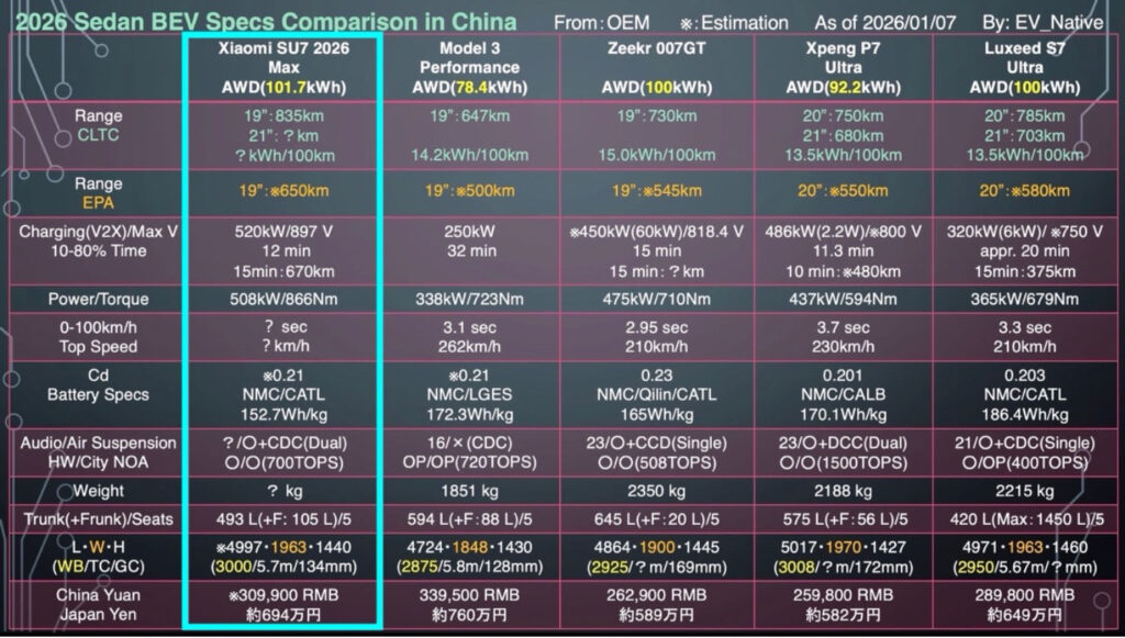 まず、シャオミは2025年、SU7のハイパフォーマンスモデル「SU7 Ultra」と電動SUV「YU7」を投入することで、41万台を超えるEVを発売しました。その一方で、2024年3月から発売がスタートしていたミッドサイズセダン「SU7」は、競合のEVセダンと比較して、EV性能や装備内容で見劣りしており、とくに新型モデルであるYU7と比較しても見劣りしていたことから、SU7もYU7と同等のEV性能や装備内容にアップグレードが期待されていたという背景が存在したのです。