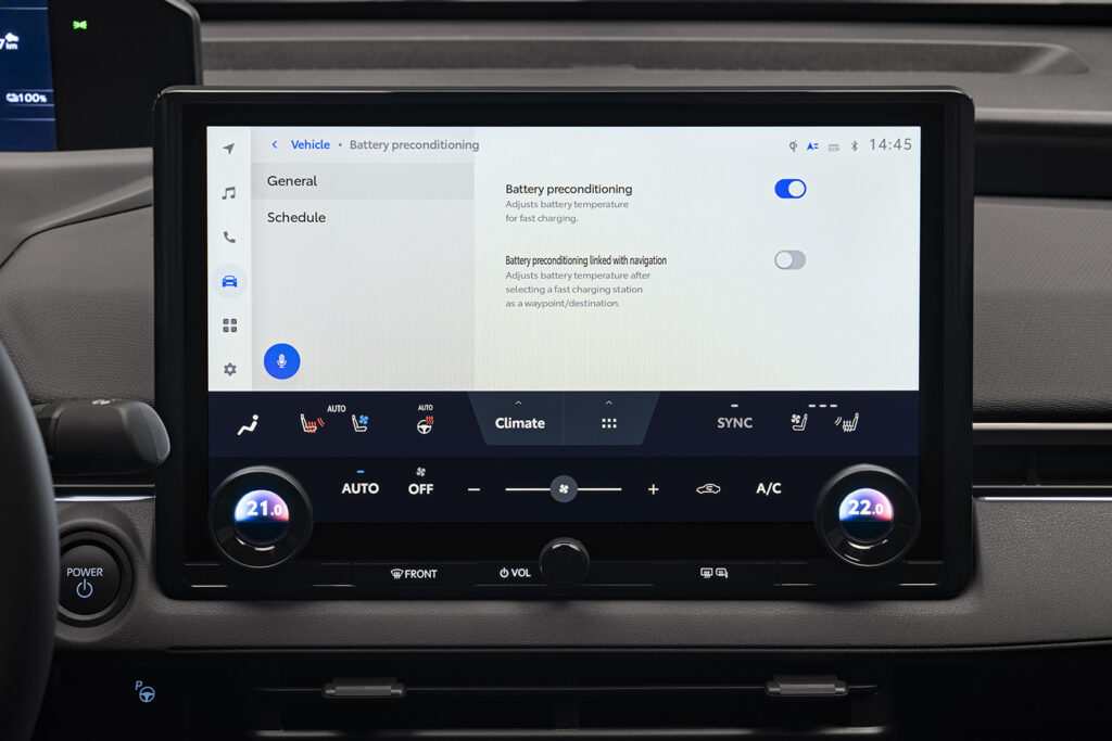具体的には、電池容量の拡大により、満充電での航続距離が伸びた。FWD(前輪駆動車)で746km(WLTCモード)、4WDでは678kmだ。また、低温での急速充電時間についても、バッテリーのプレコンディショニング機能によって改善された。外気温マイナス10度でも出力150kW(SOC10〜80%)で約28分だ。