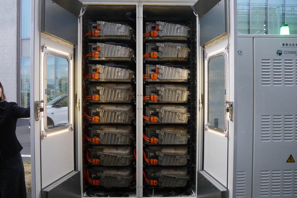 三菱ふそうトラック・バスは、EVトラックのeキャンターで使用済みとなったリチウムイオンバッテリーを、充電器と一体化した蓄電池システムに活用する実証実験を、京都府にある日向市役所と川崎製鉄所で行うと2025年に発表した。そして、実用化は2026年内を目指している。