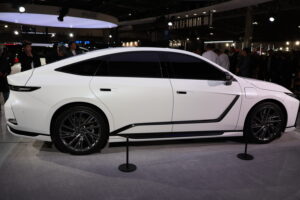 中国・東風汽車が日本上陸!? EVセダン「モンスタースポーツ007」日本導入で意味深発言【東京オートサロン2026】