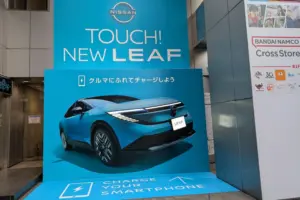 「日産リーフ」の広告かと思いきやこれはスマホの充電器? 体験型屋外広告「BATTERY WALL」にギャルもびっくり